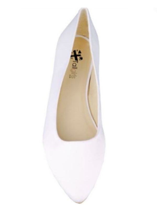 Description: Ivory flat pumps in a simple elegant style with low heels.
