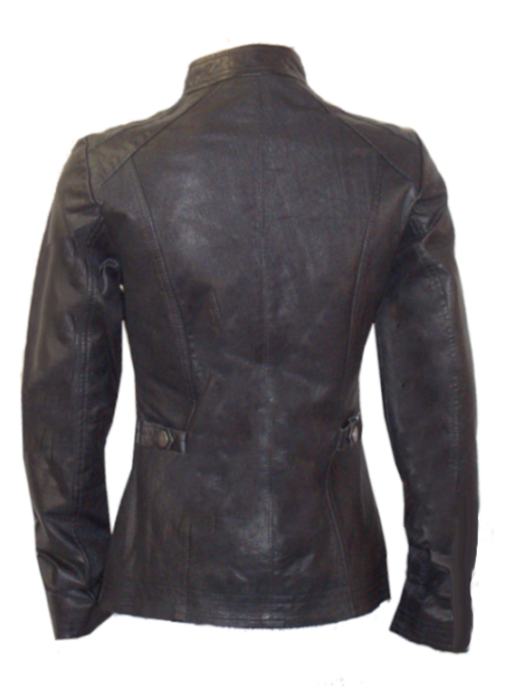 Description Women's leather jacket in a nice soft leather and sporty biker style with stand-up collar, two chest pockets and two hand pockets. Lined.