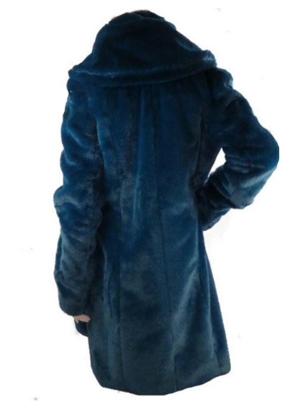 Beskrivning: En underbart mjuk fuskäls i Italiensk god kvalitet. Längd straxt ovanför knäna. Lätt figursydd med två fickor fram och rymlig i storleken. Kragen är härligt over-sized och värmer högt upp när hela kappan är knäppt. Färgen går i blågrönt.