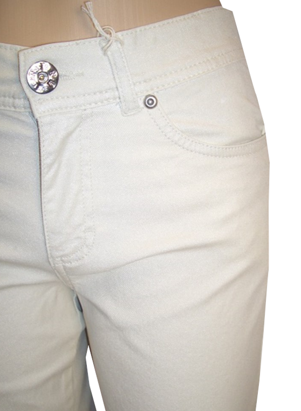 Description: Beige comfortable five pocket jeans with a high waist. Discreet basic model which fits most. Large in size.