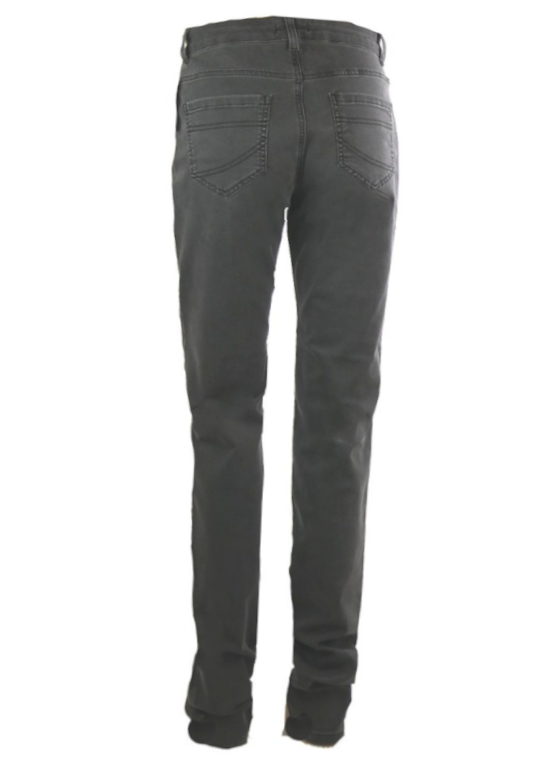 Beskrivning: Stretchiga mjuka jeans med ganska hög midja och smala ben, ej super-slimmade. Med två fickor bak och två fusk-fickor fram slimmas figuren snyggt. Samma modell som våra bestsäljande svarta byxor. Matt i färgen.
