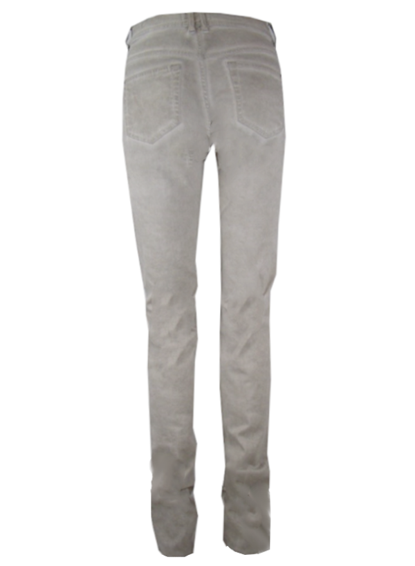 Description Beige jeans with "used look" in fabric. Narrow legs and five pockets. A little stretch. Normal in size and quite high waist.