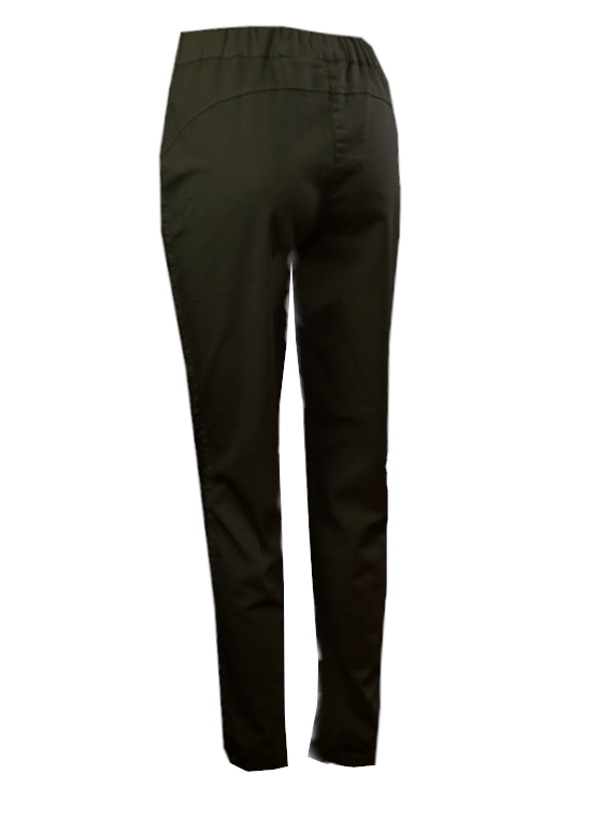 Description: Great looking trousers with elastic on back and belt on front, sligthly narrow legs and elastic at the bottom, slanted pockets at the front, with silvery zipper slightly stretchy in fabric and true in size.