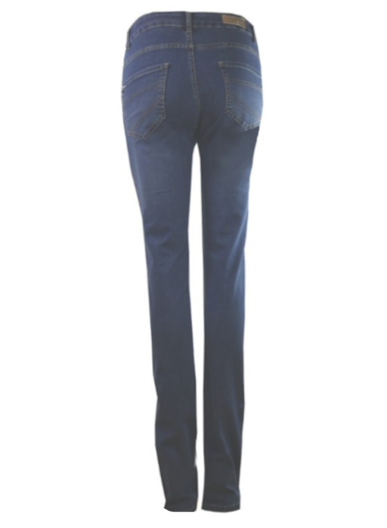Beskrivning: Sköna superslimmade jeans utan framfickor., bara dekorationssömmar. Hällor i midjan och en knapp med dragkedja. Två fickor bak med diskreta sömmar.