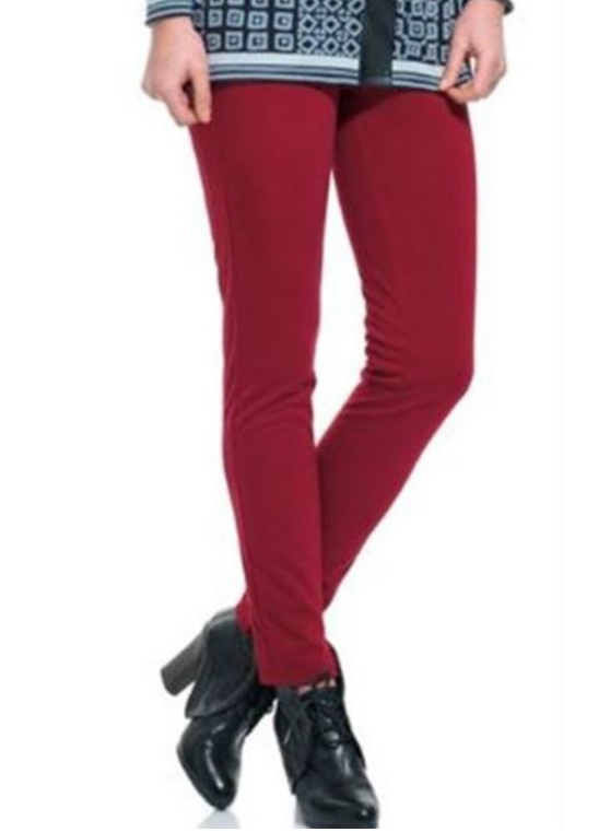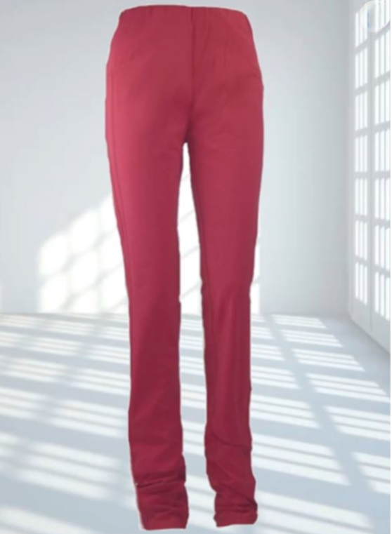 Description: Mat red very comfortable straight pants with slightly tapered legs. Elastic band in waist.