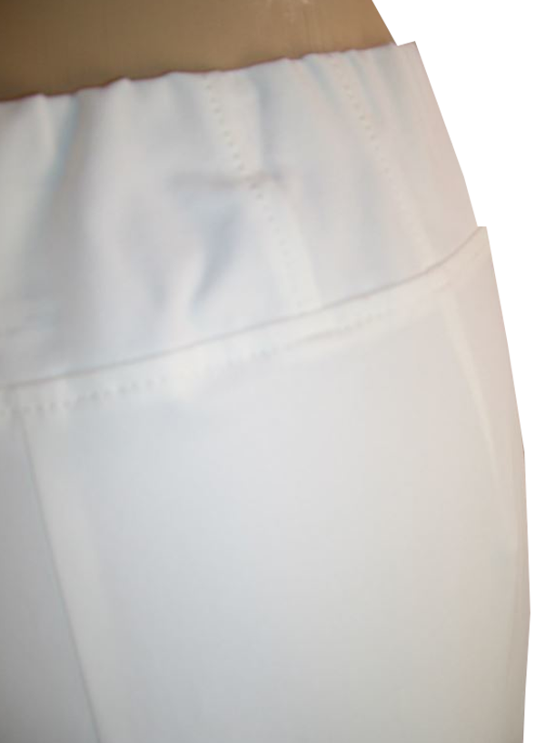 Beskrivning: Mycket välsittande byxor som kan användas vid de flesta tillfällen. Smalnar av nedåt i benen men är inte supertajta. Resår i midjan och härligt bekväm midjehöjd. Dekorativa sömmar och liten öppning nederst i benen. Beninnerlängd något kortare än 36 tum.