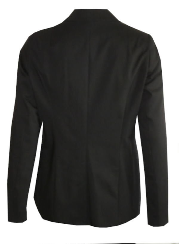 Description: A very exclusive black jacket with back slit. Decorative front opening with two closeable buttons. Two front pockets. A bit curvy fit. Black luxury jacket pants are available if you wish, in the same material.