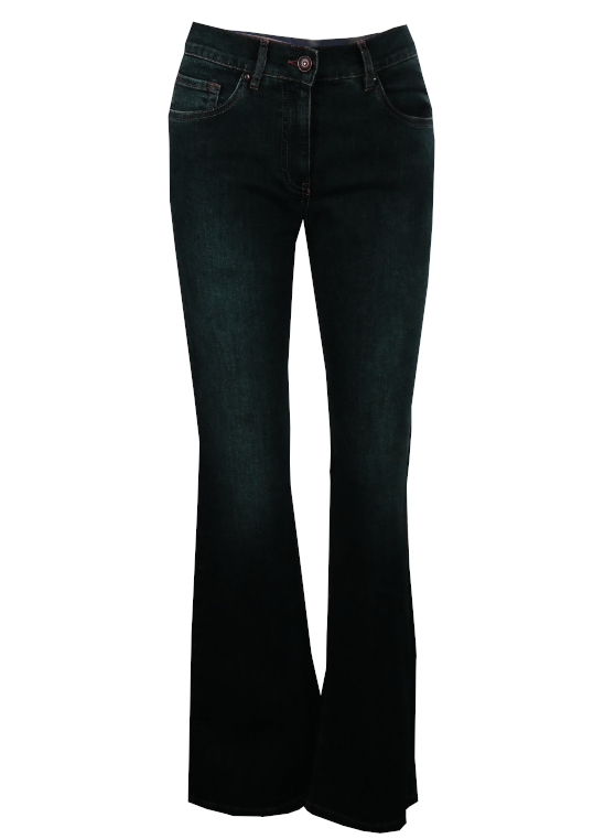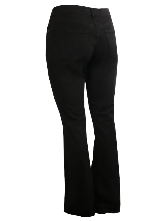 Beskrivning: Stretchiga jeans i hög kvalitet. Femficksmodell i enkelt svart. Fickor bak lätt dekorerade. Benen har utåtgående vidd under knäna. Rymliga i storleken, de flesta köper en storlek mindre än vanligt. Naturvänligt producerade.
