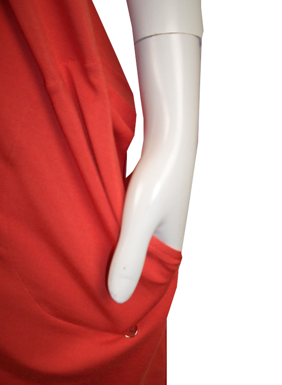Description: Simple tunic in bright orange color and soft material of good quality. Two useful pockets at the sides. Back seam. Wider at the bottom. Please order one size larger than normal.