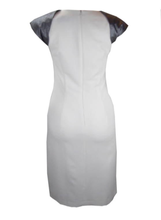 Description: Form-fitting knee-length dress where the waist is displaced to fit tall women. Two silvery pockets with good depth. Silvery detail that is sewn around the sleeves and shoulders. Lined, allowing it to fit perfect. Discrete model for all occasions. Spacious in size.