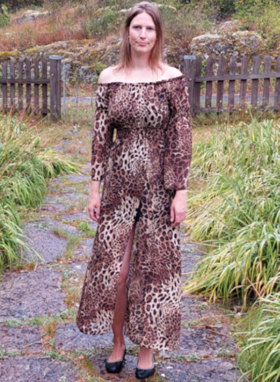 Description: Stylish dress in a longer model. Printed animal pattern. True in size. Made in Italy.
