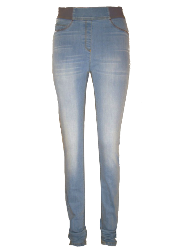 Beskrivning: Sköna stretchiga slim legs med delvis resår i midjan (beigegrå färg) som passar bra till både gravida och de som tycker det känns bättre med mindre tight passform i midjan. Två rymliga bakfickor och en liten fram. Dragkedja i sidorna nederst på benen. Ganska stor i storleken.