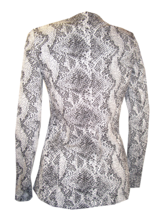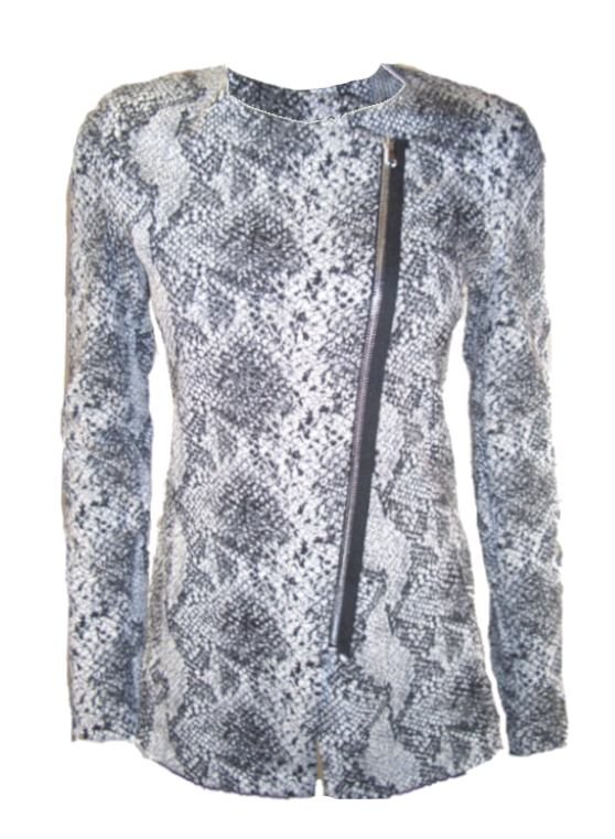 Beskrivning Mycket välsittande Italiensk kavaj-jacka i modern stil. Sned dragkedja fram som man kan välja att ha uppdragen eller lite längre ner och visa en "krage". Normal i storleken och mycket bra kvalitet.